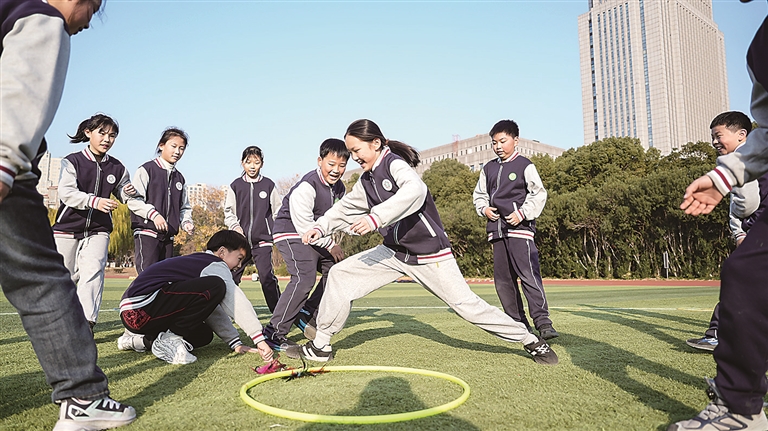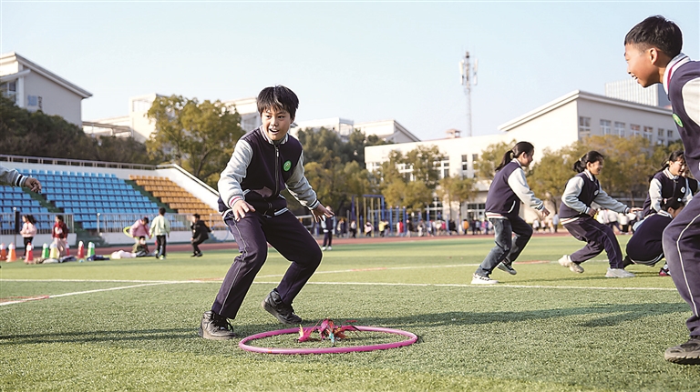 为落实江苏省“2·15专项行动”,白鹿小学开展体育创意游戏项目化实践活动,师生经过创编、改进、评价等环节,评选并推广优秀原创游戏,让学生在快乐游戏中提升参与、分享与合作创新能力。
